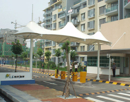 雨篷,網架等遮 陽產品。多年來堅持“以客戶為本”的經營理念,受到了 廣大朋友歡迎! 本公司的產品在國內同行業處于領先地位。主要以膜 結構、停車篷、高檔遮陽傘、傘、帳篷、遮陽篷、伸縮篷篷布為主。膜結構可分為:張拉膜、景觀膜、停車膜、進口膜材等!翱抠|量取勝,服務立足”是我們永不放棄的信念;“以獨特創